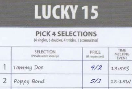However, the shrewd punter needs to be mindful of the prices on offer. Shop around and make sure that you are getting the best odds available for your selections and not necessarily the best Lucky 15 promotional offer. This is especially crucial with horse racing whereby prices can vary and with significant differences between bookmakers.